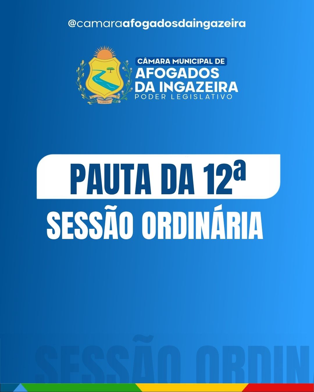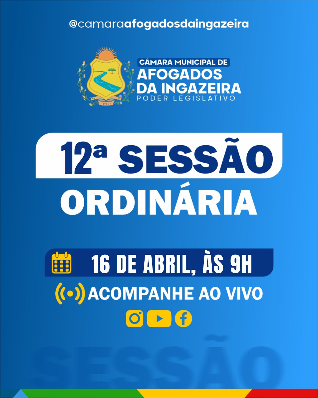 A Câmara municipal de Afogados da Ingazeira, nesta data de 16 de abril de 2026, realizou a sua 12ª Sessão Ordinária objetivando discutir o Projeto de Lei em tramitação e o requerimento, matéria que constam no portal da transparência